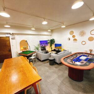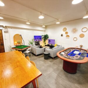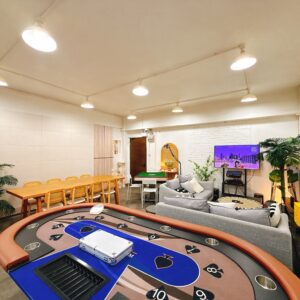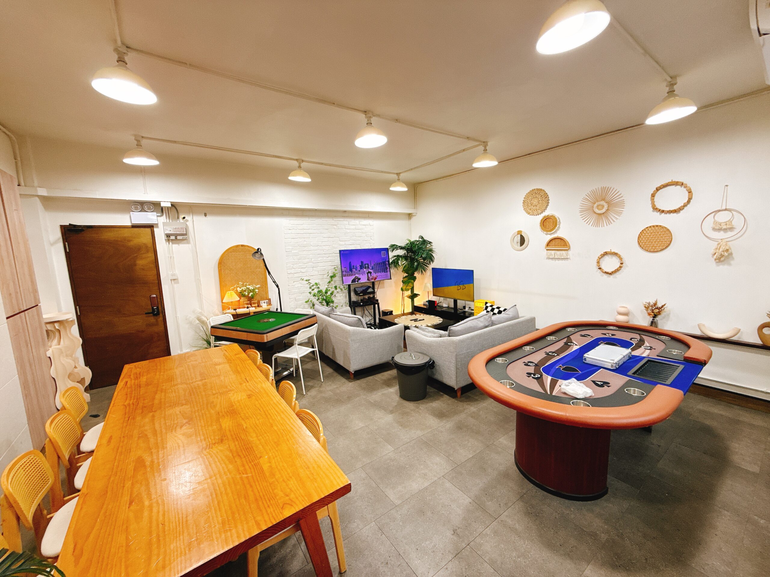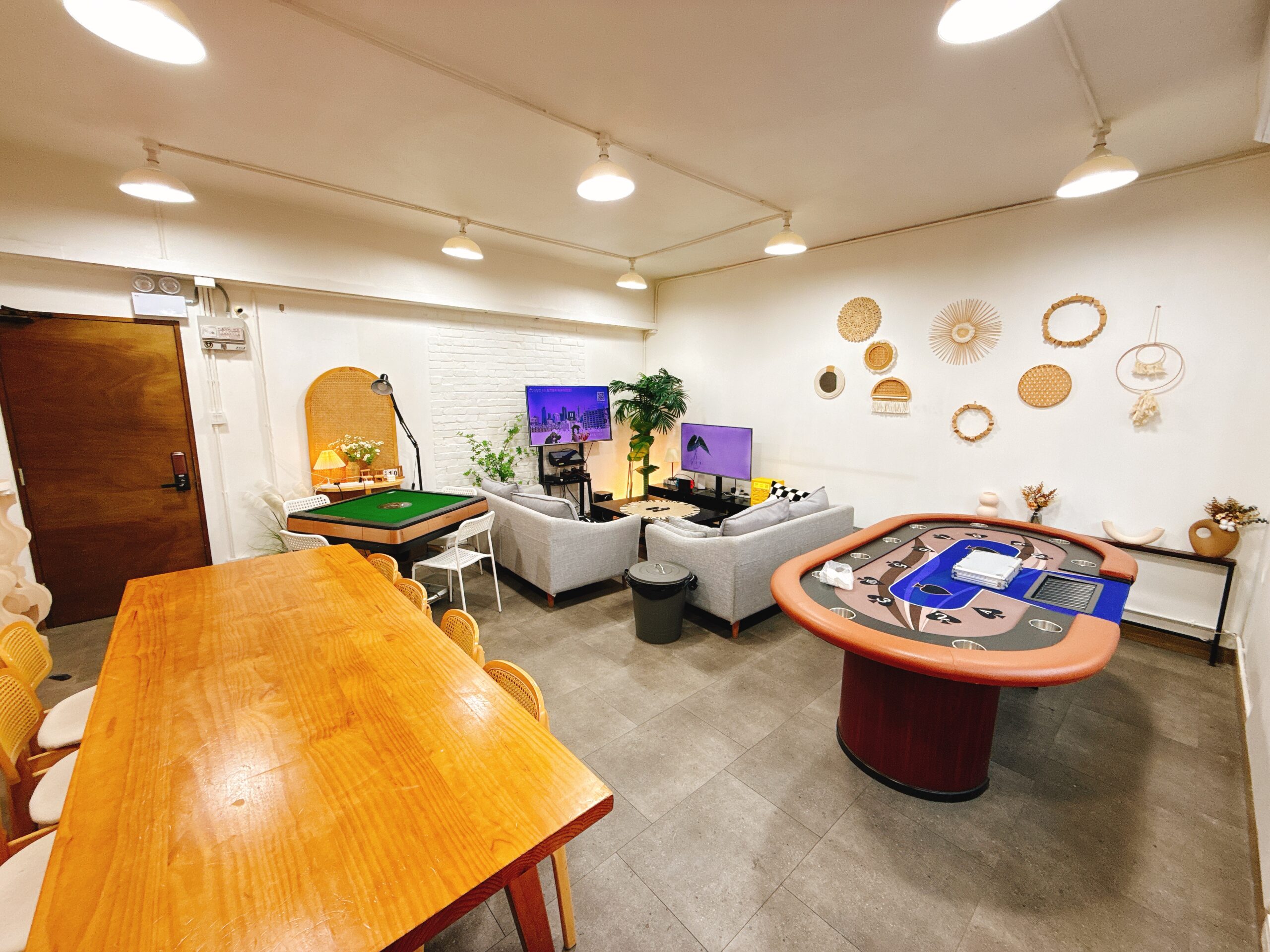 50″電視屏幕、43″ 電視屏幕、switch、多款桌遊、優質音響、poker枱及籌碼、雪櫃、梳化、BBQ 平台、免費Wi-Fi、各款手機充電線。