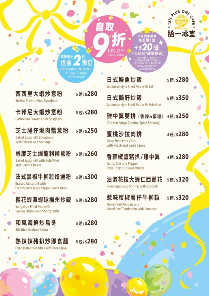 客人可自由選擇以下膳食安排: